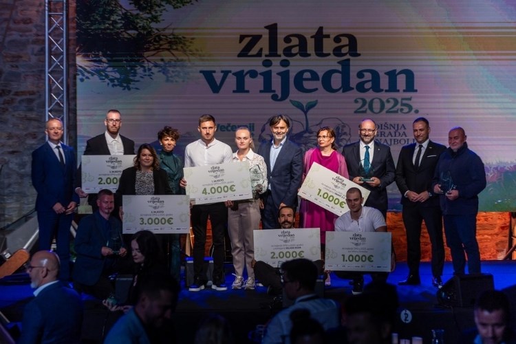 Oni su svoju nagradu - ček na 1000 eura - primili od glavnog urednika Večernjeg lista, Dražena Klarića. Generalni pokrovitelj projekta Zlata vrijedan, SPAR Hrvatska, dodijelio je nagradu SMART OPG 4.0 gospodarstvu Pčelarstvo Burić iz Vrbovskog za primjenjuju novih tehnologija i inovacija u poljoprivredi. Moniki i Saši Buriću nagradu u iznosu od 1000 eura uručio je Goran Vukelić, direktor SPAR Hrvatska d.o.o. Uzvanike su kroz program vodili Martina Validžić i Ognjen Golubić, a u glazbenom dijelu programa na Medvedgradu su nastupili Mia Dimšić i Damir Kedžo. Kako je bilo na svečanoj završnici 12. izbora za najbolje obiteljsko poljoprivredno gospodarstvo - Zlata vrijedan, pogledajte u nedjelju 14. rujna u 17.55 sati na Drugom programu HTV-a.