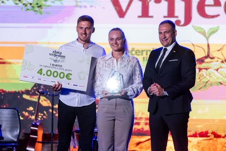 Oni su svoju nagradu - ček na 1000 eura - primili od glavnog urednika Večernjeg lista, Dražena Klarića. Generalni pokrovitelj projekta Zlata vrijedan, SPAR Hrvatska, dodijelio je nagradu SMART OPG 4.0 gospodarstvu Pčelarstvo Burić iz Vrbovskog za primjenjuju novih tehnologija i inovacija u poljoprivredi. Moniki i Saši Buriću nagradu u iznosu od 1000 eura uručio je Goran Vukelić, direktor SPAR Hrvatska d.o.o. Uzvanike su kroz program vodili Martina Validžić i Ognjen Golubić, a u glazbenom dijelu programa na Medvedgradu su nastupili Mia Dimšić i Damir Kedžo. Kako je bilo na svečanoj završnici 12. izbora za najbolje obiteljsko poljoprivredno gospodarstvo - Zlata vrijedan, pogledajte u nedjelju 14. rujna u 17.55 sati na Drugom programu HTV-a.