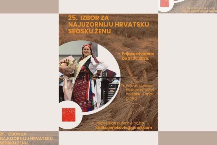 Otvorene su prijave za jubilarni, 25. Izbor za najuzorniju hrvatsku seosku ženu. Prijave traju do 1. lipnja 2025., a završna svečanost i proglašenje pobjednice održat će se 11. listopada 2025. u Brodsko-posavskoj županiji.
